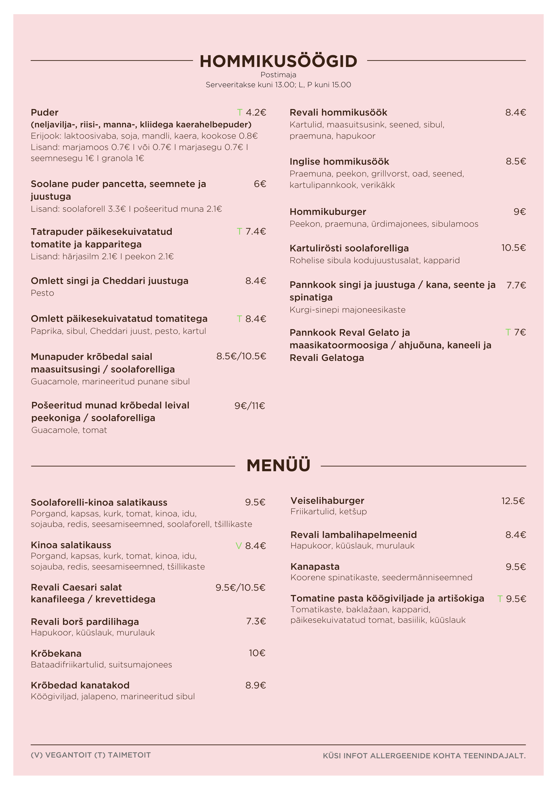 Uuenduskuuri käigus on kohviku toiduvalik varasemaga võrreldes laiem ning nüüd on esindatud kõik Reval Café hitid Kõikides meie munaroogades on kasutatud Linnu Talu rõõmsate kanade munasid.
