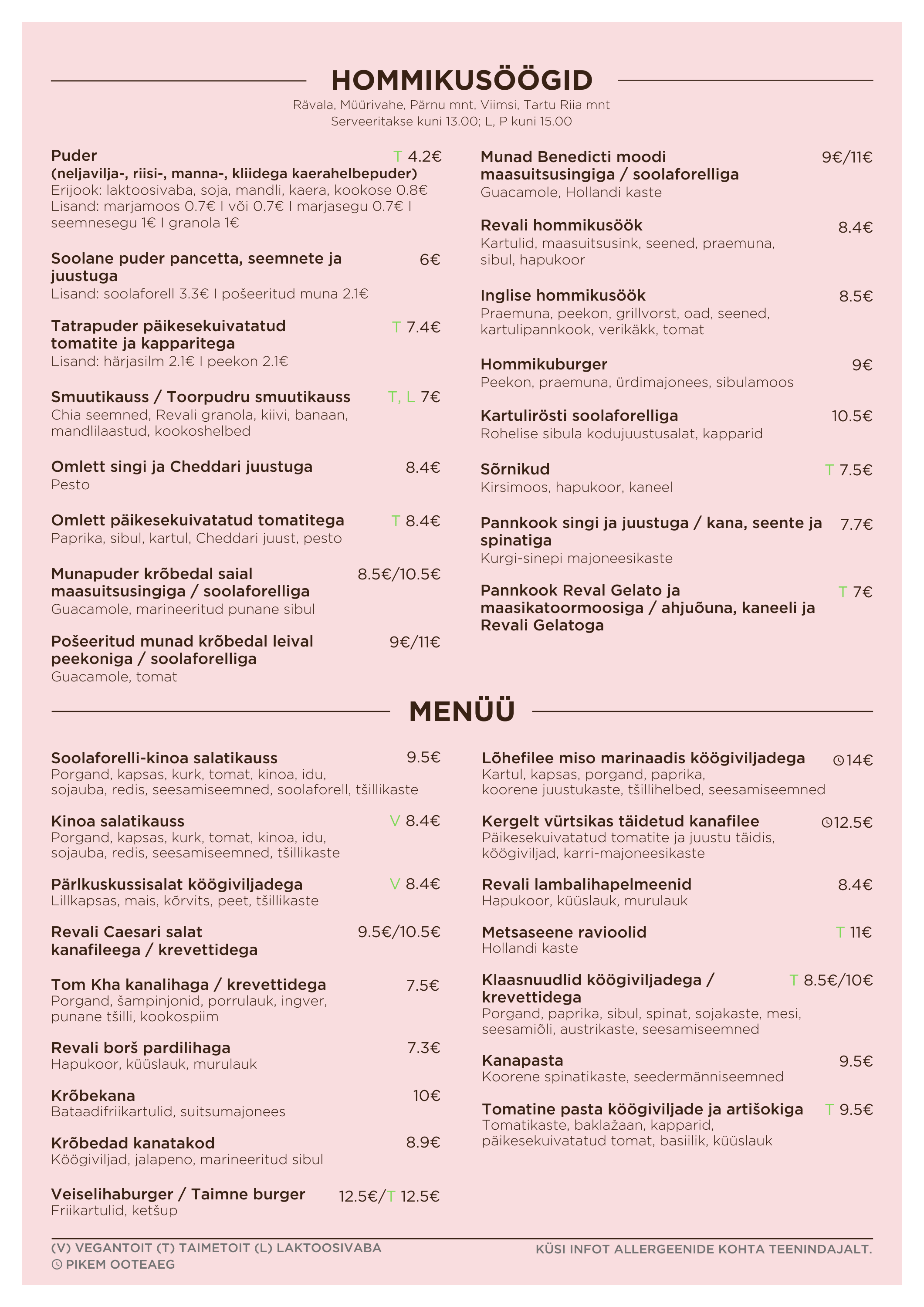 Müürivahe tn 14 asuv Revali kohvik-restoran on õdus koht vanalinna südames, kus äripäeviti lõunat süüa ning õhtuti heas seltskonnas lihtsalt lõõgastuda ja maitsvat õhtusööki nautida. Menüüs on hõrgutavad road ning suurepärane veinivalik. Päevamenüü hinnad on igati taskukohased ja portsjonid mõnusalt kõhtutäitvad. Restoranitiivas on 40 istekohta ning see on avatud.