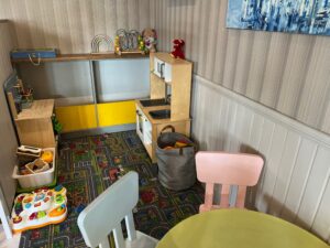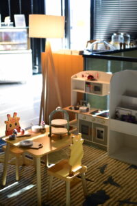 Telliskivi Reval Café – mängunurk ning ka mähkimislaud on kohvikus olemas
